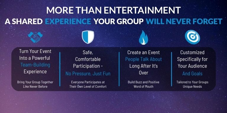 Nothing will make your event more memorable and successful than seeing and experiencing the fascination of your friends and coworkers, the people you know, becoming the stars of the hypnosis show. The entertainment is so memorable everyone will leave talking about your event for weeks and months even years afterwards.